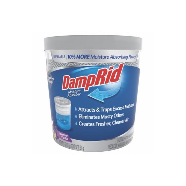 Damp Rid, 11 oz Refillable Lavender Vanilla Moisture Absorber Cups 10 more absorbing power Attracts, traps excess moisture, eliminates musty odors by drying the air to a level where mildew, mold can't grow Creates fresher, cleaner air Non Toxic, can be refilled, reused