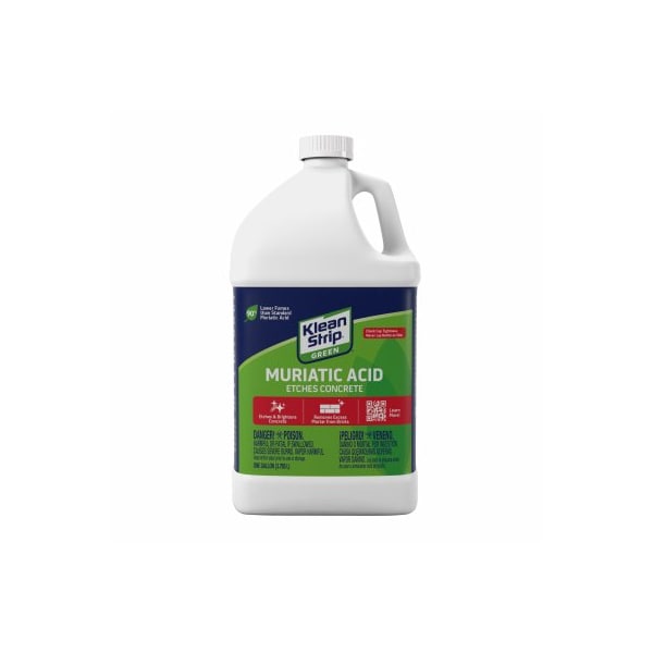 Klean-Strip Green Gallon Muriatic Acid 90% Lower Emission Of Fumes Than Standard Muriatic Acid Earth Friendly Way To Brighten Masonry Concrete Brick Stone Grout & Hard Surfaces Can Also Be Used To Etch Concrete Remove Excess Mortar From Bricks & Clean Algae & Scum.