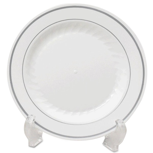 Masterpiece Plastic Dinnerware, Plate, 10.25 in. dia. White/Silver, 120PK (Discontinued)