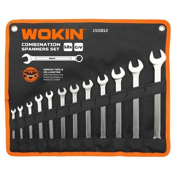 This Wokin 12 piece combination wrench set is made of high-quality chrome vanadium for a durable and long-lasting spanner set. Its satin finish makes it easy to grip while the denim pouch provides convenient storage and portability. With sizes ranging from 6mm to 22mm, this set is the perfect choice for any professional toolkit.