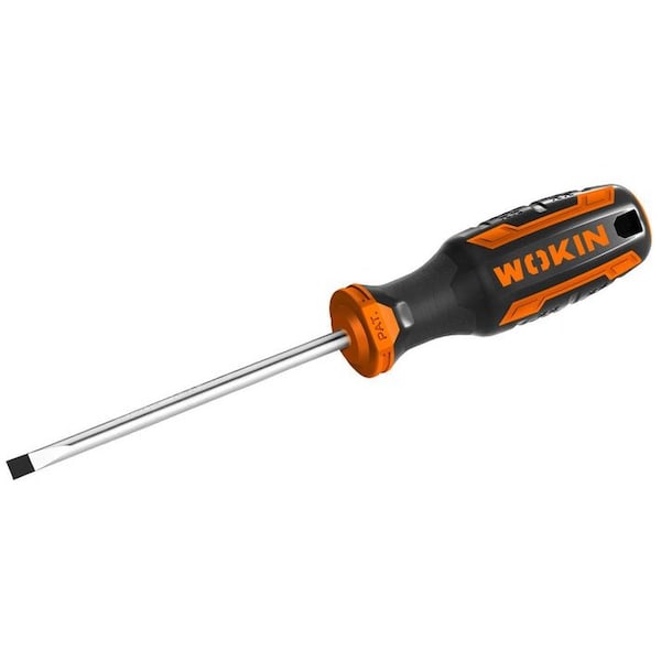 Enjoy smooth job site performance with this Wokin Slotted Screwdriver. Featuring chrome vanadium construction for strength and durability, it has a satin finish, a magnetic tip and a two-component comfortable grip for a secure hold.