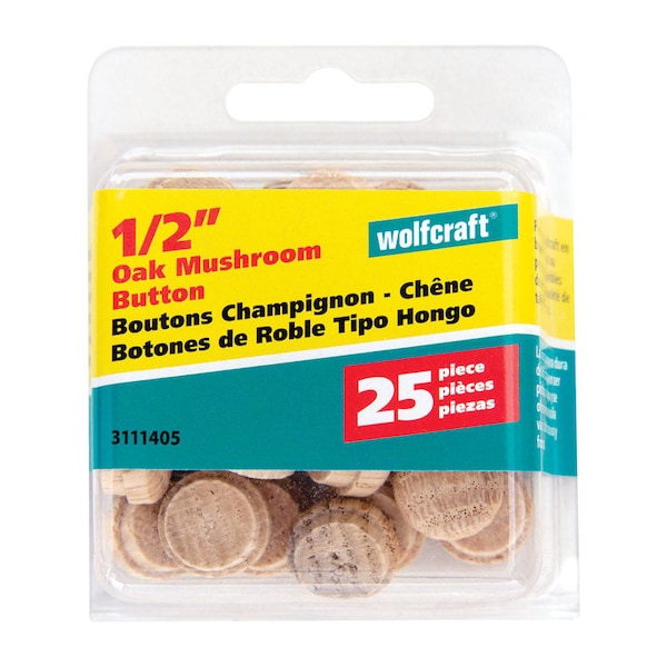 Wolfcraft Mushroom Oak Button Plug 1/2 in. D X 3/8 in. L 1 pk Natural (Discontinued)