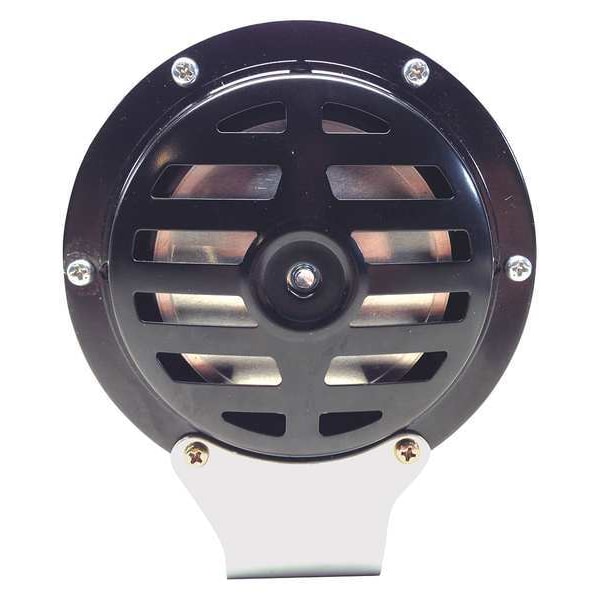 Industrial Horn, Electric, Length (In.) 7, Width (In.) 5, Height (In.) 2-1/2, Dia. (In.) 5, Material Metal, Finish Black Painted, Bracket Mount Mounting, Decibels (dB) 115, 0.8/1.6 Amps, Voltage 24/48VDC, For Use On Fork Lifts and Material Handling Equipment, Includes Mounting Bracket