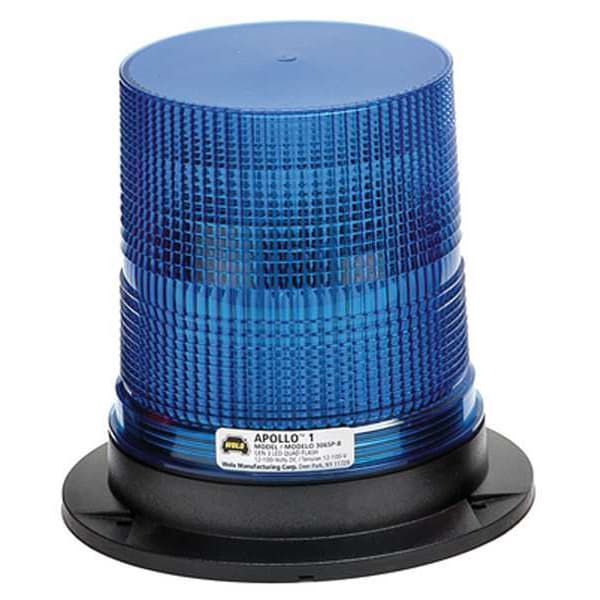 LED Warning Light, Light Type Flashing Beacon, Light Color Blue, Wattage 20 W, Lens Color Blue, Shape Round, Light Pattern Flashing, Lighting Technology LED, Installation Type Permanent, Operating Voltage 12 to 100V DC, Overall Length 4 1/2 in, Overall Diameter 7 in, Overall Height 6 3/4 in, Overall Depth 6 3/4 in, Maximum Brightness 60 lm, Series Apollo 1, Includes In-Line Fuse Holder, Mounting Hardware, Rubber Gasket, Wire Terminals, Mount Style Surface, Base Material Plastic