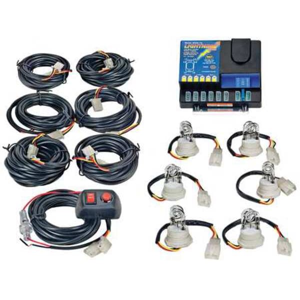 Strobe System, Number of Heads (6) Screw-In, Strobe Head Color Clear, Connection Type AMP, Number of Flash Patterns 6, Voltage 12 to 24V DC, Includes Strobe Heads, Power Supply, Power Cables, Mounting Hardware/Instructions