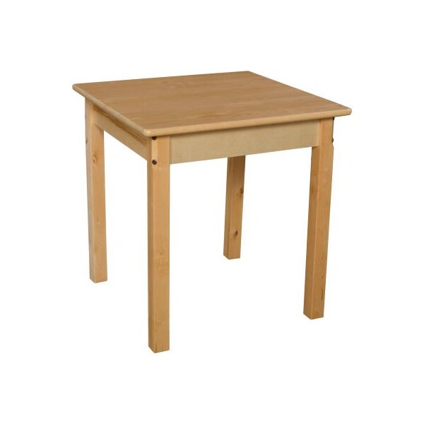 24" square table with 24" legs solid hardwood tables are built to last. Full 3/4" thick solid hardwood tops and 1-3/4" square table hardwood legs make these tables a great selection for durability and value. Carefully round table safety corners & edges keep your children safe and happy. Non-toxic natural uv finish. Easy assemble.