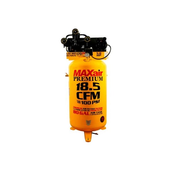 MaxAir, 5 HP, Single-Stage Comp, 80 Gal, Vertical, 170 PSI, 18.5 CFM, 1-Phase 208-230V