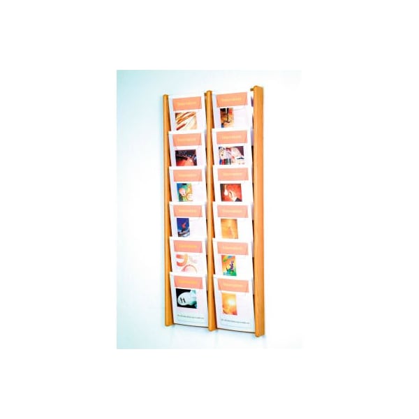 Wooden mallet's acrylic & oak wall displays are specifically designed to hold single sheets of paper without drooping. This beautiful wall mountable rack will showcase your literature in style. Our innovative overlapping shelves allow you to display more literature in less space. The frame is finished in a light oak color.