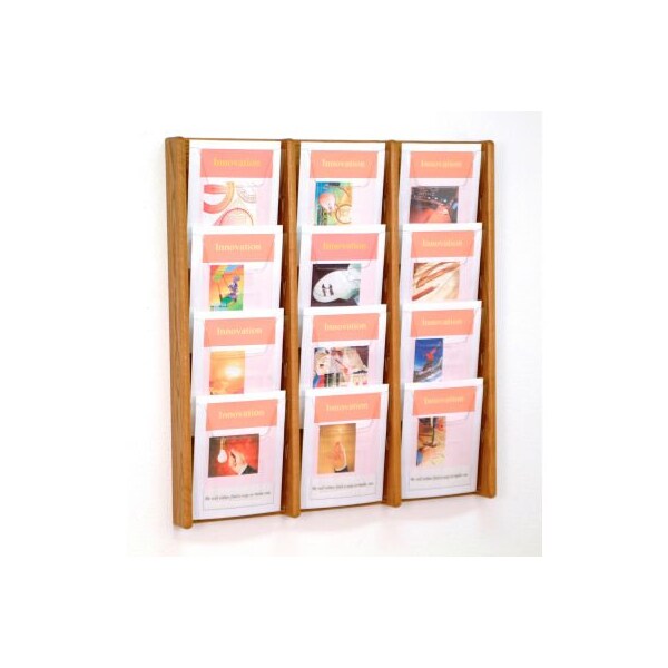 12 Pocket (3Wx4H) Acrylic & Oak Wall Display - Medium Oak