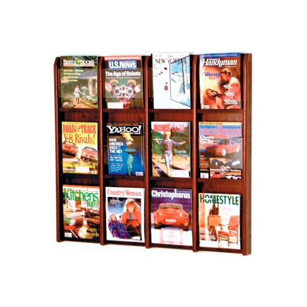 Oak literature organizers 12 pocket oak & acrylic wall rack attractive literature organizers neatly display and organize printed materials. " thick solid oak frame with laminated oak panels. Oak front pockets measure 9"w x "d to hold 8-1/2" x 11" literature. Predrilled and include hardware for easy installation. 2"d clear acrylic front panels allow full literature viewing.