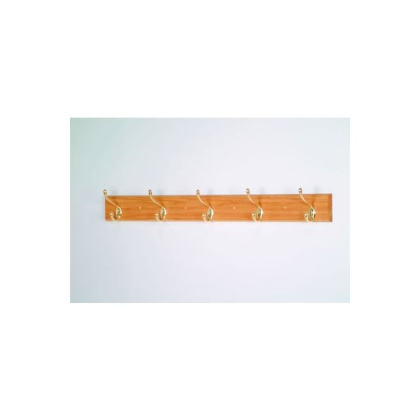 36" Coat Rack with 5 Brass Hooks - Light Oak