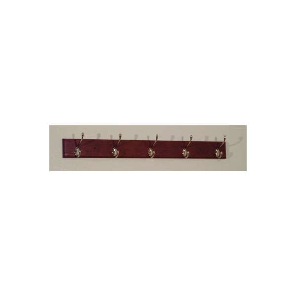36" Coat Rack with 5 Nickel Hooks - Mahogany