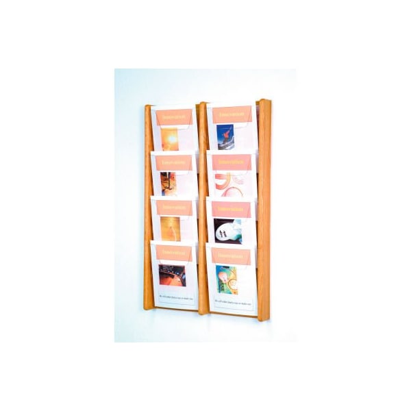 Wooden mallet's acrylic & oak wall displays are specifically designed to hold single sheets of paper without drooping. This beautiful wall mountable rack will showcase your literature in style. Our innovative overlapping shelves allow you to display more literature in less space. The frame is finished in a light oak color.