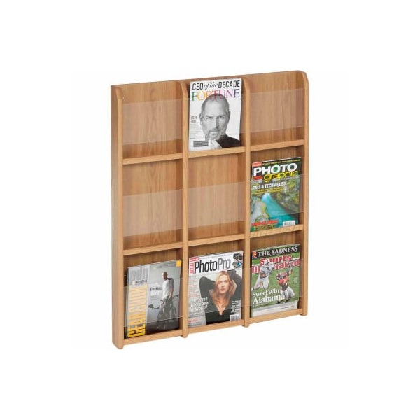 9 Magazine/18 Brochure Oak & Acrylic Wall Display - Light Oak