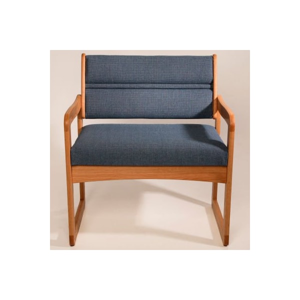 Bariatric Sled Base Chair - Light Oak/Blue Fabric