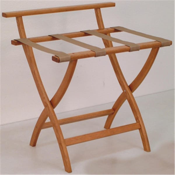 WallSaver Luggage Rack in Medium Oak with Tan Webbing (Discontinued)