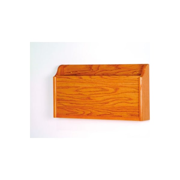 made of constructed with solid oak sides and color finished for long lasting durability. 20-1/2" w x 2-3/4" d pocket provides ample room for keeping x-rays or files secure. Predrilled and includes hardware for easy wall mounting. Size is 22-1/2" w x 3-3/4" d x 12" h . Color finish is medium oak .