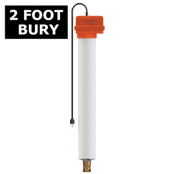 The Thermaline is a compact unit especially designed to provide water service to mobile homes. It is ideal wherever a freezeless sanitary tight line installation is needed, such as, waterers for livestock. The Thermaline is protected from freezing by a bonded polyurethane foam insulation permanently molded in a high strength plastic casing, and a portable insert heater, which costs about a penny a day to operate even at 50° below zero. The heater can be inserted and removed from the Thermaline without interrupting the water service. Galvanized steel riser pipe with coal-tar coating on lower end, brass fittings, structural foam protective surface cover, and extra large cushion valve all combine to make the Thermaline water connector virtually maintenance free. When not in use, wheel handle at surface level shuts off water below the frost line. Water above the frost line can be removed completely with forced air or suction pump. Repair parts readily available. Woodford, The Choice of Professionals.