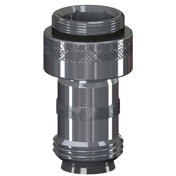UPGRADE to the NIDEL 50HA series to protect from spray-back. Standard on Woodford models C22, B22, 25, 27 and 30 with 1 1/8 in. - 18 special threads x 3/4 in. hose threads. The first ASSE 1052 Approved automatic draining high-flow double-check backflow preventer. When a hose is removed from a Model 50 equipped wall faucet or yard hydrant, two linked but independent check valves automatically move as one to open a path through the valve allowing water to drain completely and prevent freezing. Patent # 8,042,565 B2. Woodford, The Choice of Professionals.