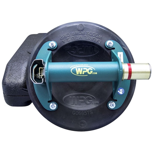 Woodfts Powr-Grip N4950TS 91506 8in Flat Vacuum Cup with Metal Handle d for Textured Surfaces Features: Specially designed vacuum pad uses softer rubber for attaching to textured or irregular surfaces.: Durable metal handle.: Fast attachment on smooth, nonporous flat surfaces.: Red-line indicator warns user of any significant vacuum loss.: Check valve allows repumping without loss of remaining vacuum.: Release valve lever permits quick and complete release.: Eligible for Powr-Grip Exchange Program.: Supplied with protective carrying case. Specifications: : Vacuum Pad: Flat, 8in 20 cm diameter model G0695TS: Load Capacity: 75 34 kg per vacuum cup Available Options: : Low vacuum audio alarm WBP: Accessory Mount Platform Kit 90130 Part # N4950TS Replaces Woodfts Part # 91506
