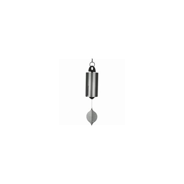 Large, Antiqued Silver Steel Heroic Bell Wind Chime, Antiqued Silver Aluminum Windcatcher, Black Finish Ash Wood Clapper.
