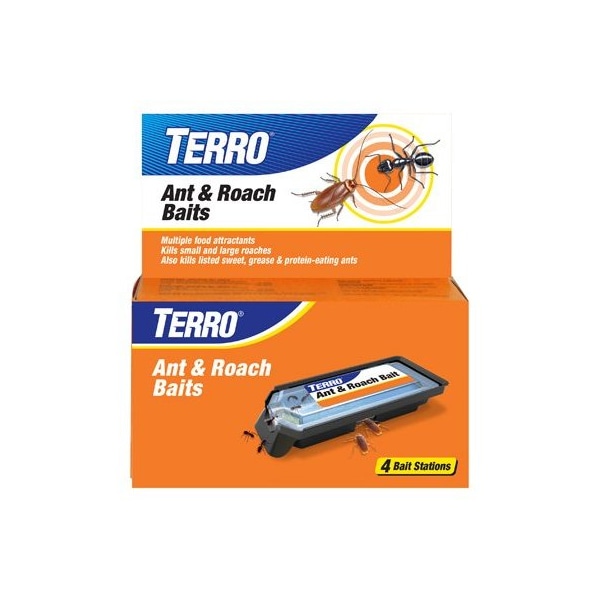 Terro 4 Pack Ant & Roach Bait Station Kills Ants & Roaches Using Multiple Food Attractants 2 Baits In 1 Kills Small & Large Roaches Also Kills Listed Sweet Grease & Protein Eating Ants.