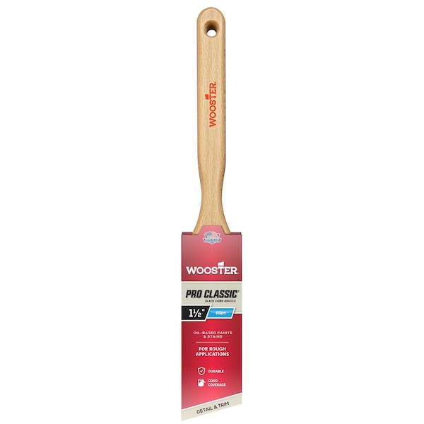 Paint Brush, Brush Style Angle Sash, Brush Size 1-1/2 in, Bristle Length 2 3/16 in, Bristle Stiffness Soft, Basic Handle Material Wood, Brush Length 2-7/16 In., Ferrule Material Rust Resistant Steel, Handle Color Natural, Handle Material Sealed Maple Wood, 11-13/16 In. Overall Length