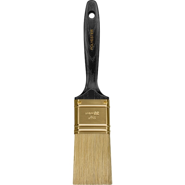 Paint Brush, Brush Style Flat Sash, Filament Type Synthetic, Filament Material Polyester, Brush Size 1 1/2 in, Bristle Thickness 1/2 in, Bristle Length 2 3/16 in, Bristle Stiffness Firm, Handle Type Beavertail, Basic Handle Material Plastic, For Paint or Coating Type All Paints and Coatings, Surface Material Brick, Concrete, Drywall, Metal, Wood, For Paint Base Type Oil, Water, Surface Texture Medium, Smooth, Bristle Color Gold, Bristle Width 1 1/2 in, Brush Length 2 3/16 in
