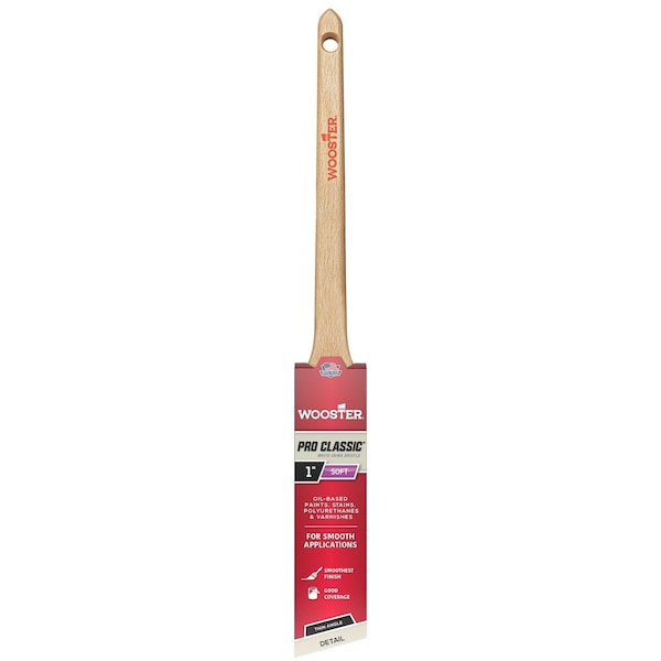 Paint Brush, Brush Style Angle Sash, Brush Size 1 in, Bristle Length 2 3/16 in, Bristle Stiffness Soft, Basic Handle Material Wood, Brush Length 2-3/16 In., Ferrule Material Rust Resistant Steel, Handle Color Natural, Handle Material Sealed Maple Wood, 10-3/4 In. Overall Length