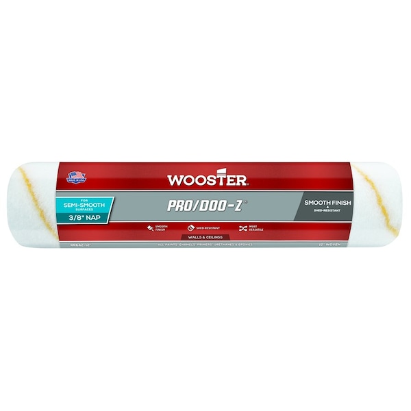 Pro/Doo-Z provides excellent results with the most demanding coatings. Made of dense, high capacity interlocked fibers to prevent shedding Pro/Doo-Z provides the smoothest finish. Pro/Doo-Z fabric resists matting and stays resilient through a full day of use. The golden pinstripe fabric helps identify this great cover.