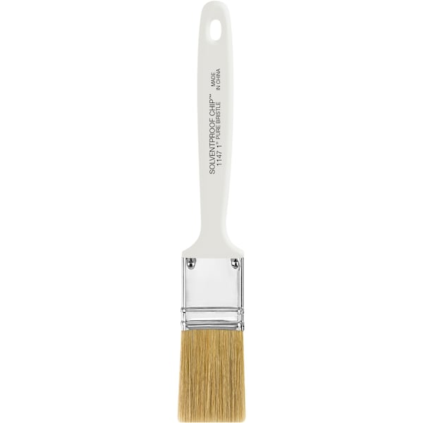 White China bristle, square trim. Tin-plated steel ferrule. Clear plastic flat handle resists water and solvents; 4 size has beavertail handle.
