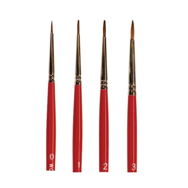 A great round artist brush made of red sable bristle and a red handle. Made for use with oils and acrylics.
