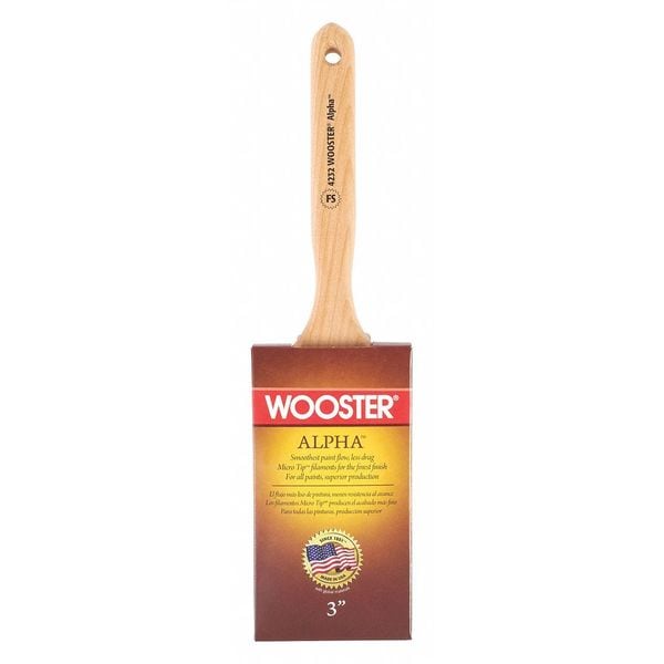 Paint Brush, Brush Style Flat Sash, Filament Type Synthetic, Filament Material Synthetic, Brush Size 3 in, Bristle Thickness 5/8 in, Bristle Length 2 15/16 in, Bristle Stiffness Firm, Handle Type Sash, Basic Handle Material Wood, For Paint or Coating Type All Paints and Coatings, Surface Material Concrete, Drywall, Metal, Wood, For Paint Base Type Oil, Water, Surface Texture Medium, Smooth, Bristle Width 3 in, Brush Length 3-3/16 In., Ferrule Material Stainless Steel, Handle Color Natural