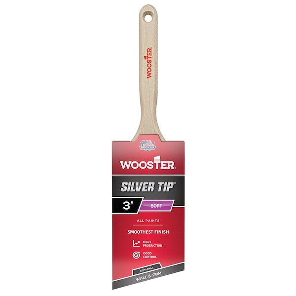3" Semi-Oval Angle Sash Soft, Silver CT Polyester Bristle, Paint Brush, Wood Handle