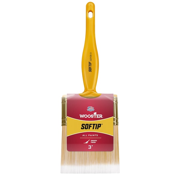 No other brush paints smoother and faster at this price point! Wooster Softip features fine, feather-like filament ends that reduce brushmarks. The famous, short, pearl-yellow handle offers comfort and control as well as shelf appeal. Softip provides good results in all paints, latex and oil-based.