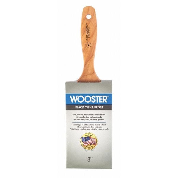 Paint Brush, Brush Style Wall, Brush Size 3 in, Bristle Length 2 15/16 in, Bristle Stiffness Soft, Basic Handle Material Wood, Brush Length 3-7/16 In., Ferrule Material Rust Resistant Steel, Handle Color Natural, Handle Material Sealed Maple Wood, 11-1/2 In. Overall Length
