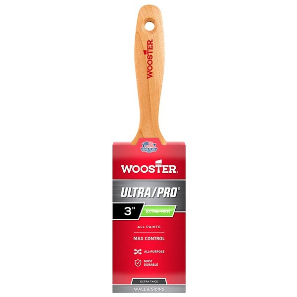 The Ultra/Pro Extra-Firm are able to cut a sharp line even in hot or humid conditions. The extra-firm is a perfect choice for all thick or fast-drying paints and primers. It excels during exterior use. Made from 100% nylon and featuring an exclusive Wooster filament called NylonPlus, it paints rigidity, resists wears, and cleans much more easily than brushes that use polyester to achieve extra stiffness.
