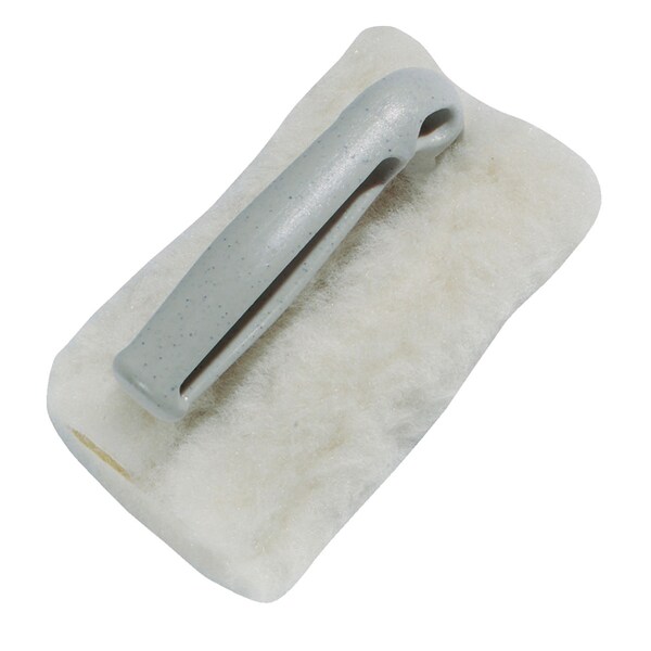 Natural buff-colored shearling for all paints, enamels, varnishes. Polypropylene handle, durable yet, lightweight. 5-1/2" w x 3-1/2" h.