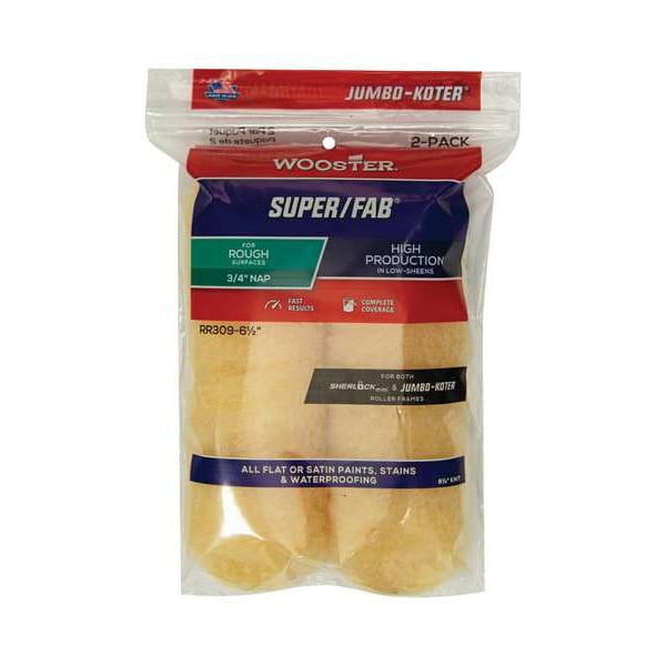 Mini Paint Rollers, Cover Type Standard, Surface Texture Rough, Semi-Rough, Compatible Roller Frame Style Cage, 6 1/2 in Overall Length, 3/4 in Nap Size, Surface Material Brick, Concrete, Drywall, Masonry, Wood, Paint Type Flat Paints, Eggshell Paints, Satin Paints, Stains, Waterproofing, Core Diameter 3/4 in, Cover Material Knit Fabric, Core Material Polypropylene, For Use With Jumbo-Koter Cage Frames, Sheen Type Low Sheen, Package Quantity 2