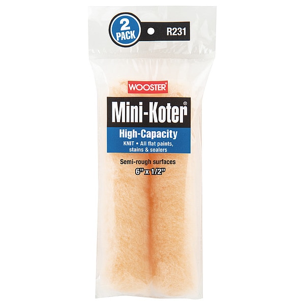 Mini Paint Rollers, Cover Type Standard, Surface Texture Semi-Rough, Compatible Roller Frame Style Wire, 6 in Overall Length, 1/2 in Nap Size, Surface Material Brick, Concrete, Drywall, Masonry, Paint Type Flat Paints, Stains, Core Diameter 1/4 in, Cover Material Knit Fabric, Package Quantity 2