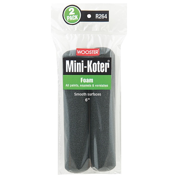 Mini Paint Rollers, Cover Type Standard, Surface Texture Smooth, Compatible Roller Frame Style Wire, 6 in Overall Length, 0 in Nap Size, Surface Material Drywall, Metal, Wood, Paint Type All Paints, Enamels, Varnishes, Core Diameter 1/4 in, Cover Material Foam, Package Quantity 2