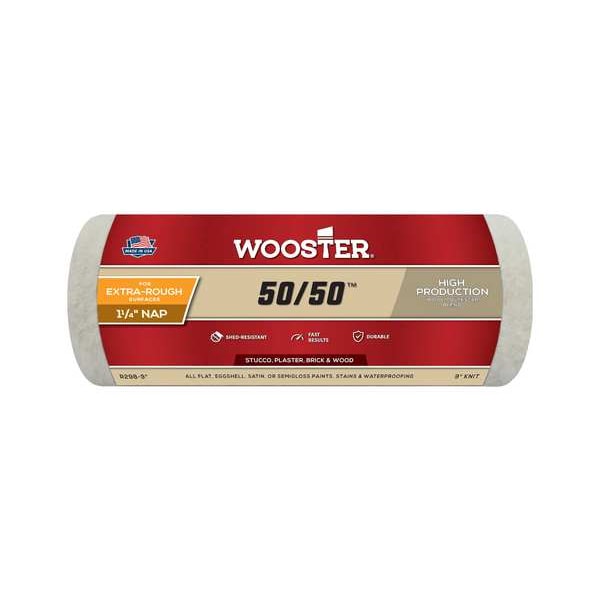 Paint Roller Cover, Cover Type Standard, Surface Texture Extra-Rough, Compatible Roller Frame Style Cage, 9 in Overall Length, 1 1/4 in Nap Size, Surface Material Brick, Concrete, Drywall, Masonry, Wood, Paint Type Flat Paints, Satin Paints, Stains, Waterproofing, Core Diameter 1 1/2 in, Cover Material Polyester, Wool, Core Material Polypropylene, For Use With 9 in W, Any 1 1/2 in dia Cage Frame, Sheen Type Satin, Semi-Gloss