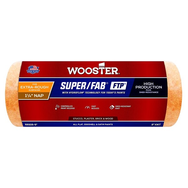 Super/Fab FTP is a non-matting, shed-resistant, and fast performance cover. New HydroFlow technology enables the cover to release paint smoothly and consitently. It makes painting easier because ther'es no need to go back and rework an area to get the perfect coverage. The soft knit fabric construction offers superior capacity and retains bounce-back for reuse. 1/2-inch nap for light texture surfaces Semi-smooth walls & ceilings, lightly textured drywall or wood