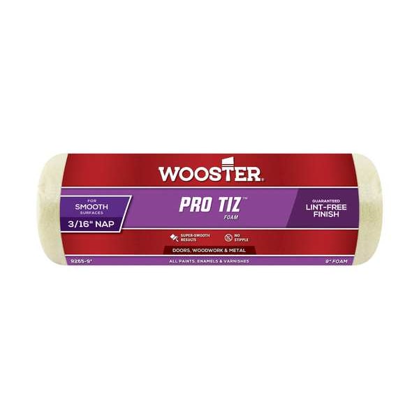 Paint Roller Cover, Cover Type Standard, Surface Texture Smooth, Compatible Roller Frame Style Cage, 9 in Overall Length, 0 in Nap Size, Surface Material Drywall, Metal, Wood, Paint Type All Paints, Enamels, Varnishes, Core Diameter 1 1/2 in, Cover Material Foam, Core Material Phenolic, For Use With 9 in W, Any 1 1/2 in dia Cage Frame
