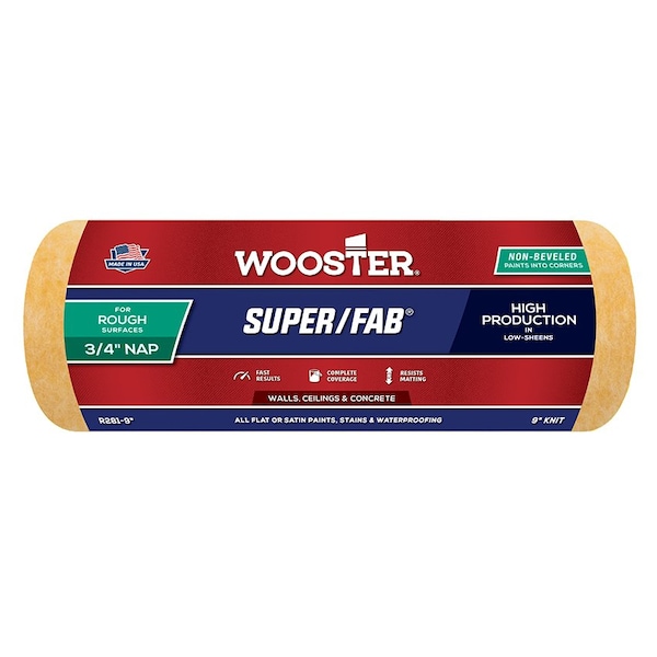 Overhanging material from the non-beveled end rolls paint into corners for fast production. Super/Fab rollers are made with the finest materials. They offer high paint capacity with less dripping or spatter to deliver faster, cleaner painting. The fabric resists matting for complete coverage and smooth painting results. Ideal for applying paints to smooth or lightly textured walls & ceilings, lightly textured drywall, stucco or wood and acoustical tile.