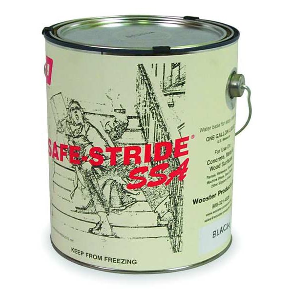 Anti-Skid Paint, Water Based Acrylic, Color Black, Matte Finish, 1 gal., Application Method Brush,Roll, Trowel, Application Temperature Above 50 F, Coverage 100 to 125 sq. ft., Dry Time 4 hr., Adheres To Wood, Metal, Asphalt, Stone, Concrete, Marble And Most Clean Dry Surfaces, For Use With Steps, Walkways, Decks And Locker Room Floors