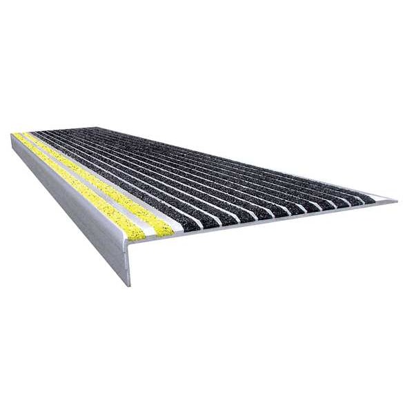Stair Tread, Blk/Ylw, 36in W, Extruded Alum