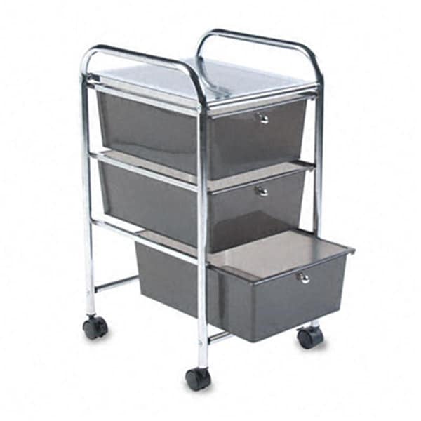 Portable Three-Drawer Organizer Chrome Metal Frame/Smoke Drawers