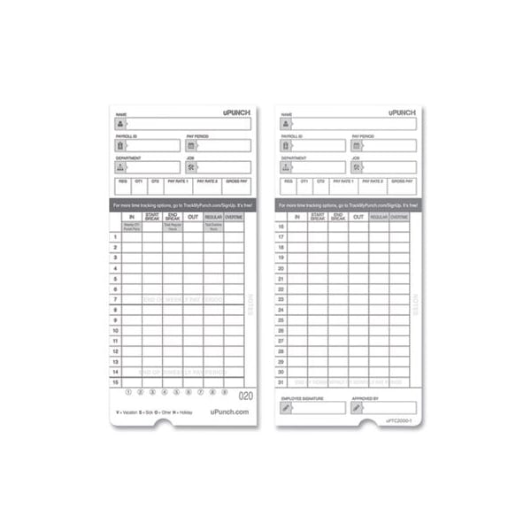 Time Clock Cards For Upunch Hn4000, Two Sides, 7.37 X 3.37, 50PK