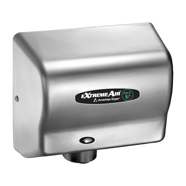 Hand Dryer, Dry Time 10 sec, Cover Material Stainless Steel, ADA Compliant No, Sound Level 56 dBA, Voltage 110/240V AC, Heat Setting Levels No Heat, Compatible with HEPA Filter No, Includes HEPA Filter No, Dryer Activation Automatic, Mount Type Surface, Finish Brushed, Standards cULus, ETL, GSA, Includes Security Wrench, Tamper-Resistant Screws, Air Flow Rate 19,000 lfm, Maximum Air Temperature 85 Degrees F, Features Energy Efficient, Universal Voltage, Product Type Hand Dryer, Current 20 A